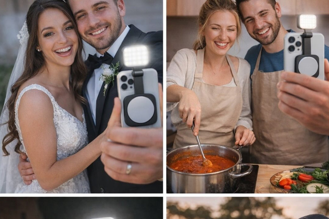 Düğün, yemek, vlog veya arkadaş buluşması… Telefonunuza takın, ışığı açın, fotoğraf ve videolarınızı daha profesyonel hale getirin.